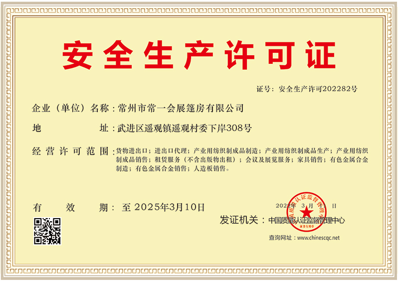 常州市常一會展篷房有限公司(簡稱常一篷房),創(chuàng)立于2006年,坐落于中國制造名鎮(zhèn)江蘇省常州市武進(jìn)區(qū)遙觀鎮(zhèn),公司占地面積近萬平方米,距離常州機(jī)場,高鐵常州站,常州長途汽車站僅半個小時路程,交通十分快捷。我公司地處滬寧高速(G42)橫山橋出口處,滬武高速(S38)戚墅堰、遙觀、橫林出口處,G312國道遙觀段,S232省道遙觀段,常州東環(huán)線遙觀段設(shè)置了標(biāo)準(zhǔn)化廣告指路牌,物流交通非常便利,以方便國內(nèi)外客戶......